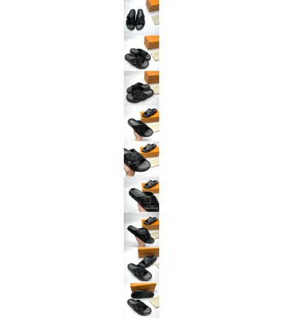 • [홍콩명품.LOUIS VUITTON] 루이비통 23SS 다미에 레더 슬리퍼 (블랙), SE1524, PMD, 무브타임사이트,인터넷명품쇼핑몰,남자명품,슈즈,신발