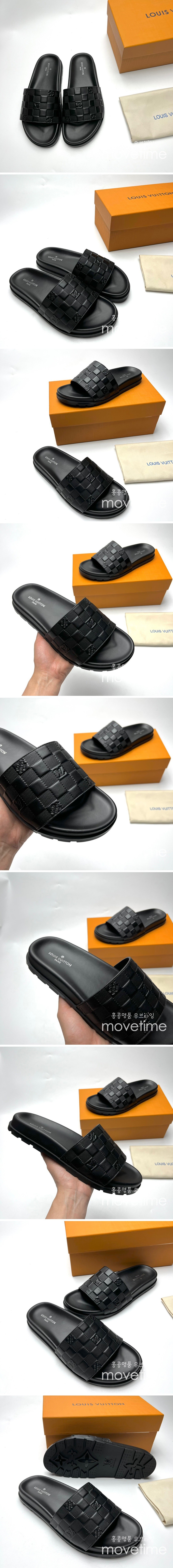 • [홍콩명품.LOUIS VUITTON] 루이비통 23SS 다미에 레더 슬리퍼 (블랙), SE1526, PMD, 무브타임사이트,인터넷명품쇼핑몰,남자명품,슈즈,신발