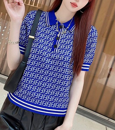 [홍콩명품,FENDI] 펜디 23SS FF패턴 니트 폴로 반팔 티셔츠 (블루), BM6769, TBG, 온라인명품쇼핑몰,의류,무브타임사이트,인터넷쇼핑몰,해외직구 > 여성몰