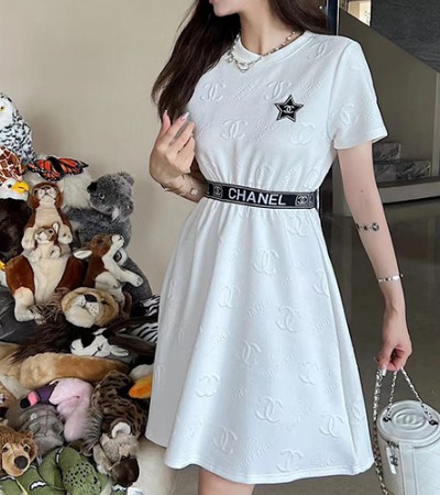 • [홍콩명품.CHANEL] 샤넬 23SS CC로고 코튼 벨티드 원피스 (화이트), BM6774, BR, 온라인명품쇼핑몰,의류,무브타임사이트,인터넷쇼핑몰,해외직구