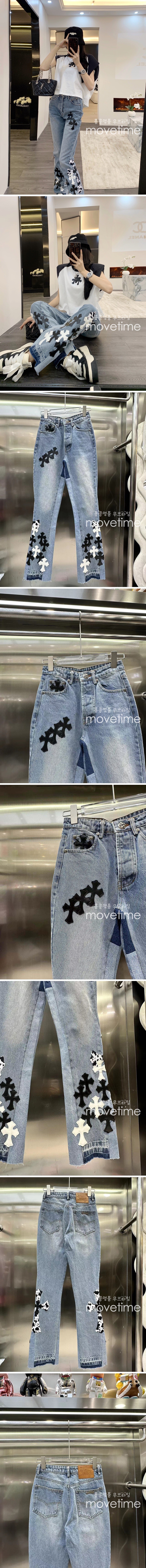 [홍콩명품.Chrome Hearts] 크롬하츠 23SS 크로스 레더 로고 데님 팬츠 진 청바지, BM6816, SG, 온라인명품쇼핑몰,남자명품의류,인터넷쇼핑몰,해외직구 > 여성몰