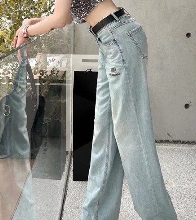 [홍콩명품.BALENCIAGA] 발렌시아가 23SS 로고 스터드 장식 데님 팬츠 진 청바지, BM7628, SG, 온라인명품쇼핑몰,남자명품의류,인터넷쇼핑몰,해외직구 > 여성몰