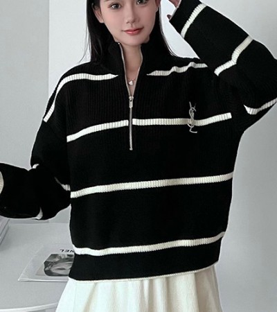 [홍콩명품.YSL] 입생로랑 23SS 로고 스트라이프 하이넥 하프지퍼 니트 스웨터, BM8348, TBG, 온라인명품쇼핑몰,남자명품의류,인터넷쇼핑몰,해외직구 > 여성몰