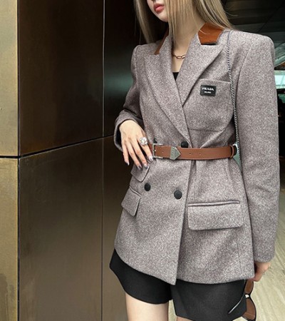 [홍콩명품,PRADA] 프라다 23SS 로고 벨티드 울 정장 자켓, BM9226, TBG, 온라인명품쇼핑몰,남자명품의류,인터넷쇼핑몰,해외직구 > 여성몰