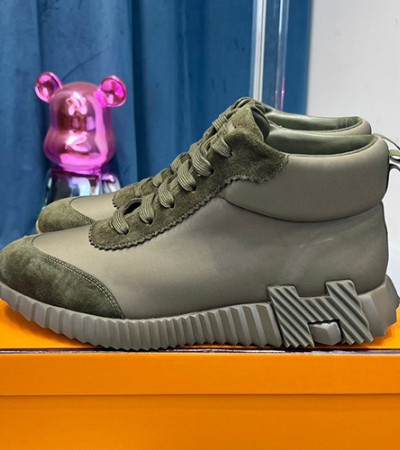 [홍콩명품.Hermes] 에르메스 23SS 로고 Eclair 남성 가죽 하이탑 스니커즈 (카키), SE2220, 홍콩명품쇼핑몰,무브타임,악세사리,잡화,생활용품 > 신발