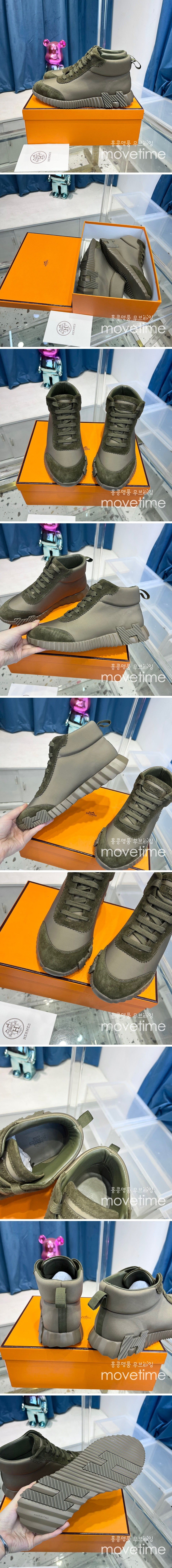 • [홍콩명품.Hermes] 에르메스 23SS 로고 Eclair 남성 가죽 하이탑 스니커즈 (카키), SE2220, 홍콩명품쇼핑몰,무브타임,악세사리,잡화,생활용품