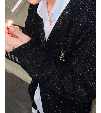 • [홍콩명품.YSL] 입생로랑 23SS 로고 V넥 니트 가디건 (블랙), BM10642, JL, 홍콩명품의류,구매대행,온라인명품
