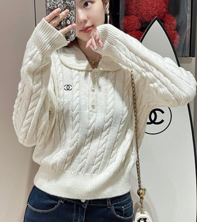 • [홍콩명품.CHANEL] 샤넬 23SS 로고 여성 카라 니트 스웨터 (2컬러), BM10934, TBG, 홍콩명품의류,구매대행,온라인명품