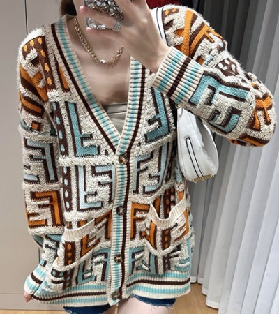 [홍콩명품,FENDI] 펜디 23SS 로고 FF패턴 V넥 니트 가디건, BM11272, TBG, 홍콩명품의류,구매대행,온라인명품 > 여성몰
