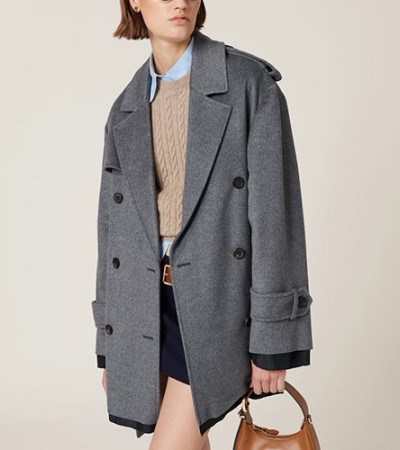 • [홍콩명품,MIU MIU] 미우미우 23SS 로고 여성 6버튼 코트 자켓 (그레이), BM11282, TBG, 홍콩명품의류,구매대행,온라인명품