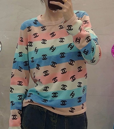 • [홍콩명품.CHANEL] 샤넬 23SS 로고 레인보우 스트라이프 니트 스웨터, BM11292, TBG, 홍콩명품의류,구매대행,온라인명품