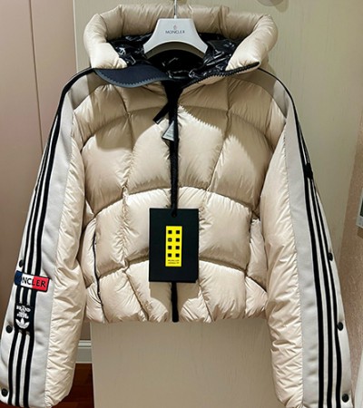 • [홍콩명품.MONCLER] 몽클레어 23SS 로고 아디다스 콜라보 후드 다운 패딩 자켓 (아이보리), BM11325, KSM, 홍콩명품의류,구매대행,온라인명품