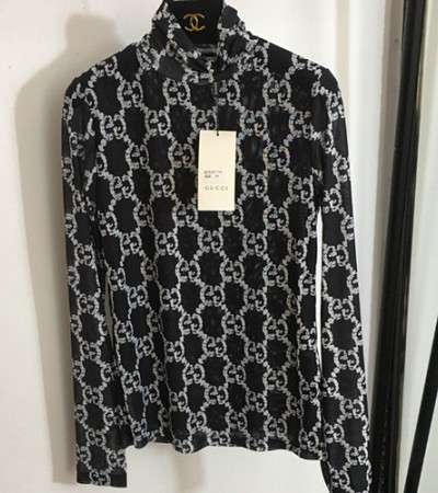 • [홍콩명품.Gucci] 구찌 24SS 로고 GG 여성 터틀넥 긴팔 티셔츠 (블랙), BM11523, BR, 홍콩명품의류,구매대행,온라인명품