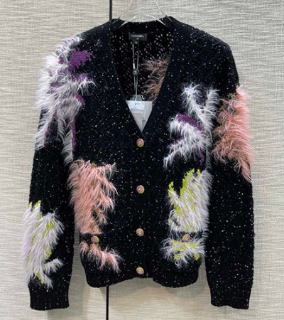 • [홍콩명품.CHANEL] 샤넬 24SS 로고 여성 플라워 패턴 카라 니트 가디건 (블랙), BM12668, TBG, 홍콩명품의류,구매대행,온라인명품