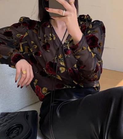 • [홍콩명품.Valentino] 발렌티노 24SS 로고 플라워 장식 여성 시스루 블라우스 셔츠, BM11785, W2, 홍콩명품의류,구매대행,온라인명품