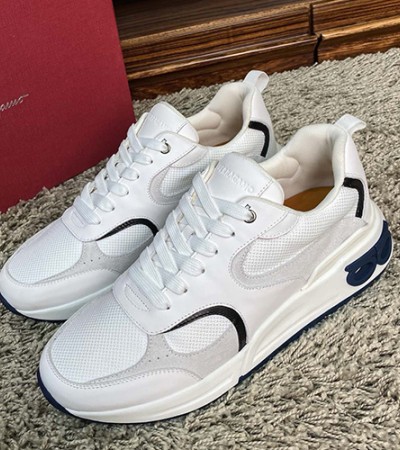 • [홍콩명품.FERRAGAMO] 페레가모 24SS 간치니 스니커즈 운동화 (화이트-네이비), SE2483, S1, 홍콩명품쇼핑몰,무브타임,악세사리,잡화,생활용품