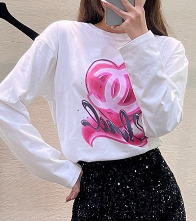 • [홍콩명품.CHANEL] 샤넬 24SS 로고 그래픽 프린트 여성 긴팔 티셔츠 (화이트), BM11916, TBG
