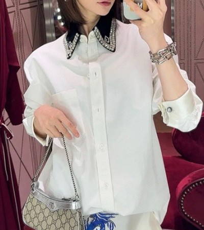 [홍콩명품.Gucci] 구찌 24SS 로고 카라 다이아 장식 여성 남방 셔츠 (화이트), BM12188, TBG, 홍콩명품의류,구매대행,온라인명품 > 여성몰