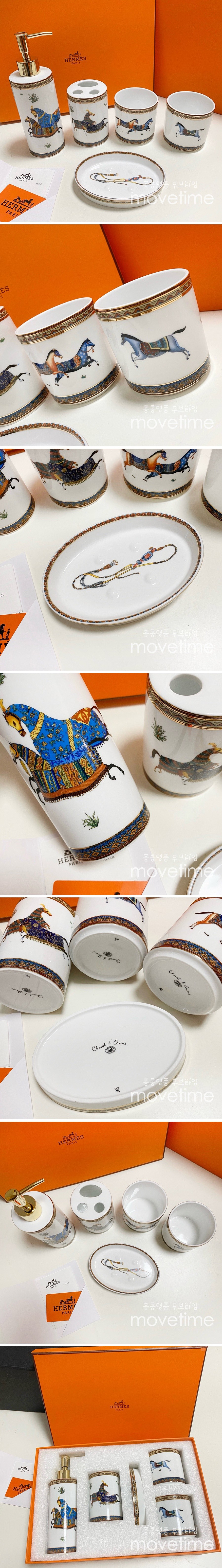 • [홍콩명품.Hermes] 에르메스 24SS 로고 도자기 샴푸용기 + 칫솔 비누 케이스 + 컵 욕실 세트, ET2107, ZAKKA, 홍콩명품가방,명품쇼핑몰,크로스백,핸드백,구매대행,무브타임