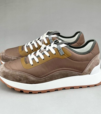 [홍콩명품.Brunello Cucinelli ] 브루넬로쿠치넬리 24SS 로고 레더 가죽 스니커즈 운동화 (브라운), SE2666, S3 > 신발