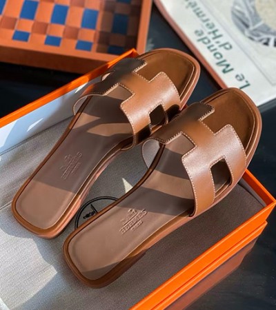 [홍콩명품.Hermes] 에르메스 24SS 로고 여성 레더 가죽 산토리니 샌들 슬리퍼 (브라운), SE2702, H3, 명품스니커즈,운동화,구두,로퍼,하이탑,신발 > 여성몰