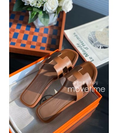 • [홍콩명품.Hermes] 에르메스 24SS 로고 여성 레더 가죽 산토리니 샌들 슬리퍼 (브라운), SE2702, H3, 명품스니커즈,운동화,구두,로퍼,하이탑,신발