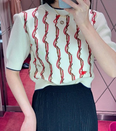 [홍콩명품.Gucci] 구찌 24SS 로고 패턴 여성 니트 반팔 티셔츠 (아이보리), BM12793, TBG, 홍콩명품의류,구매대행,온라인명품 > 여성몰