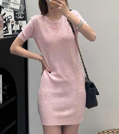 • [홍콩명품.CHANEL] 샤넬 24SS 로고 여성 반팔 니트 원피스 (2컬러), BM12812, TBG, 홍콩명품의류,구매대행,온라인명품