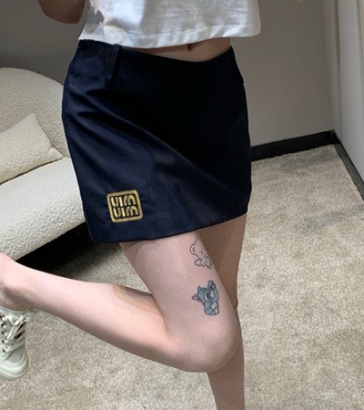[홍콩명품,MIU MIU] 미우미우 24SS 로고 여성 미니 스커트 (네이비), BM12816, TBG, 홍콩명품의류,구매대행,온라인명품 > 여성몰