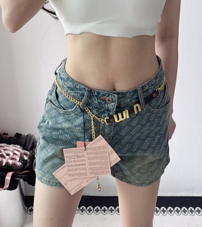 • [홍콩명품,MIU MIU] 미우미우 24SS 로고 여성 데님 미니 쇼츠 반바지, BM13039, TBG, 홍콩명품의류,구매대행,온라인명품
