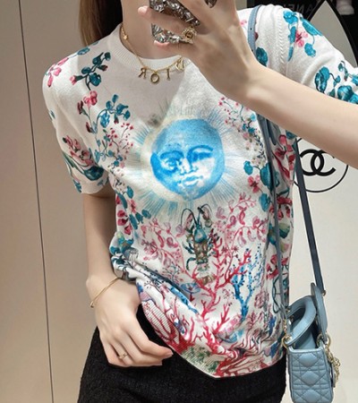 • [홍콩명품,Christian Dior] 디올 24SS 로고 여성 그래픽 니트 반팔 티셔츠 (화이트), BM13150, TBG, 홍콩명품의류,구매대행,온라인명품