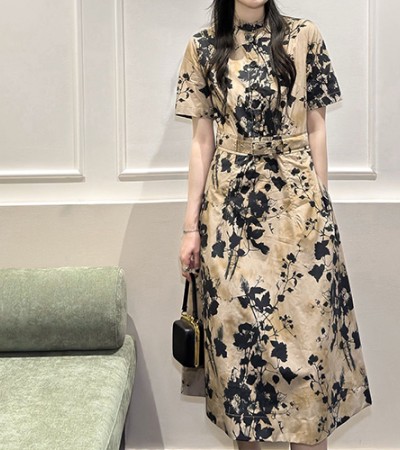 • [홍콩명품,Christian Dior] 디올 24SS 로고 패턴 프린트 여성 벨티드 롱 원피스 (베이지), BM13162, TBG, 홍콩명품의류,구매대행,온라인명품