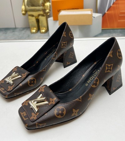 • [홍콩명품.LOUIS VUITTON] 루이비통 24SS 로고 모노그램 여성 레더 가죽 힐 굽 구두 (브라운), SE2923, SMS, 명품스니커즈,운동화,구두,로퍼,하이탑,신발