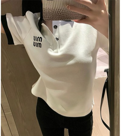 • [홍콩명품,MIU MIU] 미우미우 24SS 로고 여성 폴로 반팔 티셔츠 (화이트), BM13470, TBG, 홍콩명품의류,구매대행,온라인명품