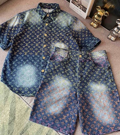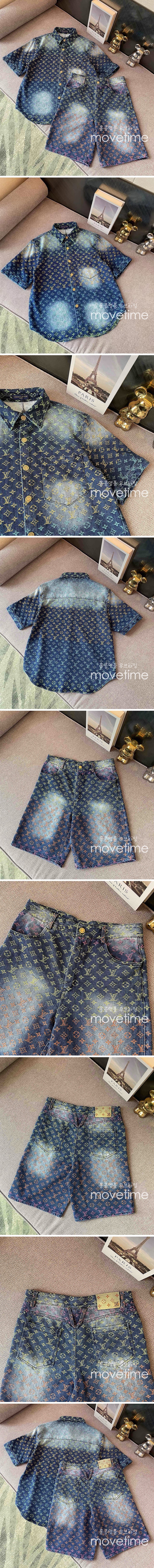 • [홍콩명품.LOUIS VUITTON] 루이비통 24SS 모노그램 데님 반팔 남방 셔츠 + 쇼츠 반바지 상하의 세트, BM13497, JU, 홍콩명품의류,구매대행,온라인명품