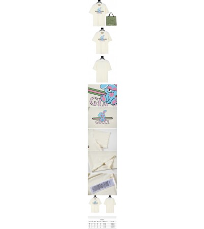 • [홍콩명품.Gucci] 구찌 24SS 로고 그래픽 래빗 프린트 반팔 티셔츠 (아이보리), BM13594, JU, 홍콩명품의류,구 매대행,온라인명품