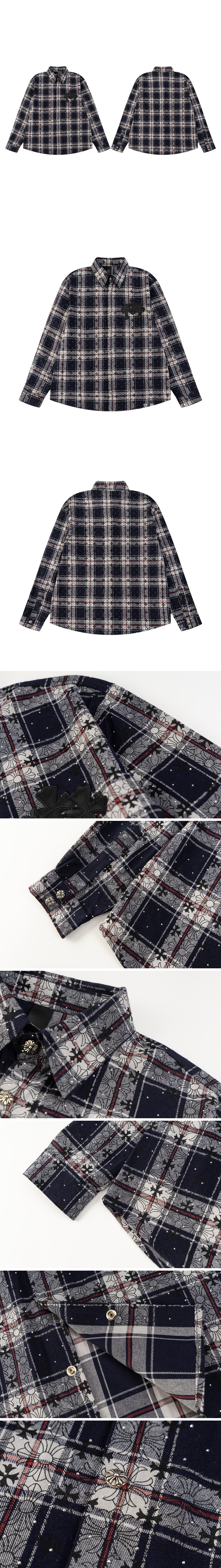 • [홍콩명품.Chrome Hearts] 크롬하츠 24SS 로고 체크패턴 울 남방 셔츠, BM13626, JU, 홍콩명품의류,구 매대행,온라인명품