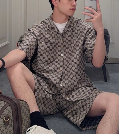 [홍콩명품.Gucci] 구찌 24SS 로고 GG수프림 반팔 남방 셔츠 + 쇼츠 반바지 상하의 세트 (카라멜), BM13630, JU, 홍콩명품의류,구 매대행,온라인명품 > 남자의류