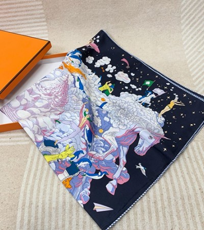 • [홍콩명품.Hermes] 에르메스 24SS 로고 패턴 실크 스카프 머플러 (네이비), ET2315, H3, 명품악세사리,팔찌,귀걸이,반지