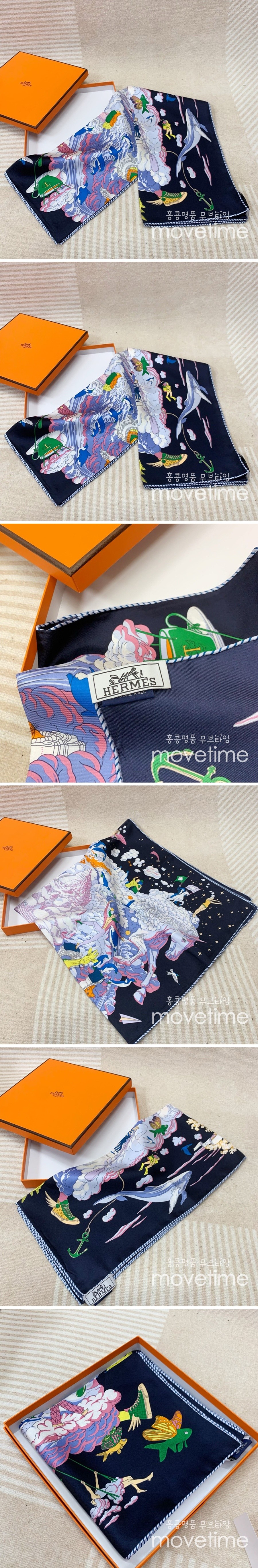 [홍콩명품.Hermes] 에르메스 24SS 로고 패턴 실크 스카프 머플러 (네이비), ET2315, H3, 명품악세사리,팔찌,귀걸이,반지 요약정보 및 구매