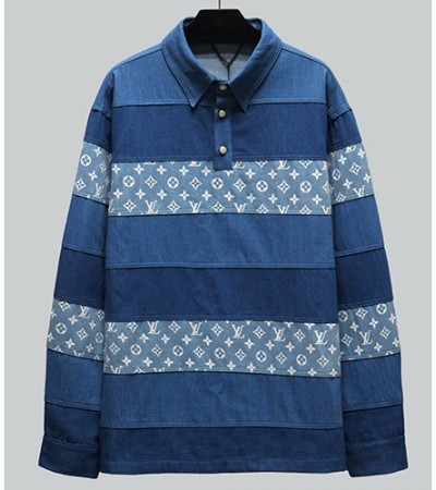 [홍콩명품.LOUIS VUITTON] 루이비통 24SS 로고 모노그램 데님 긴팔 티셔츠 + 쇼츠 반바지 상하의 세트, BM13817, JU, 홍콩명품의류,구 매대행,온라인명품 요약정보 및 구매