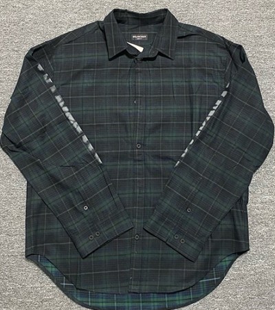 [홍콩명품.BALENCIAGA] 발렌시아가 24SS 로고 체크 패턴 오버핏 남방 셔츠 (그린), BM13877, GHH, 홍콩명품의류,구 매대행,온라인명품 > 남자의류
