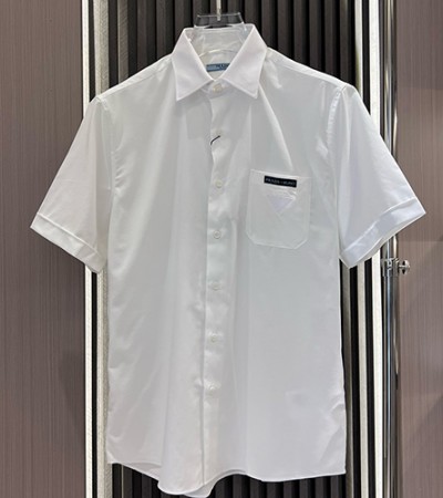 [홍콩명품,PRADA] 프라다 24SS 로고 포플린 반팔 남방 셔츠 (화이트), BM14046, JS, 홍콩명품의류,구 매대행,온라인명품 > 남자의류
