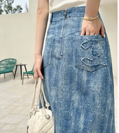 • [홍콩명품.CHANEL] 샤넬 24SS 로고 여성 데님 미디 스커트, BM14059, TBG, 홍콩명품의류,구 매대행,온라인명품