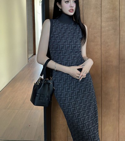• [홍콩명품,FENDI] 펜디 24SS 로고 FF패턴 여성 슬림핏 슬리브리스 롱 원피스 (다크그레이), BM14132, TBG, 홍콩명품의류,구 매대행,온라인명품