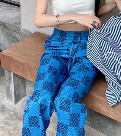 • [홍콩명품.LOUIS VUITTON] 루이비통 24SS 로고 다미에 여성 팬츠 바지 (블루), BM14248, TBG, 홍콩명품의류,구매대행,온라인명품