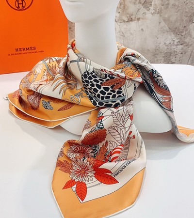 [홍콩명품.Hermes] 에르메스 24SS 로고 패턴 90-90cm 실크 리버서블 스카프 머플러 (오렌지), ET2319, H3, 명품악세사리,팔찌,귀걸이,반지 > 넥타이/스카프