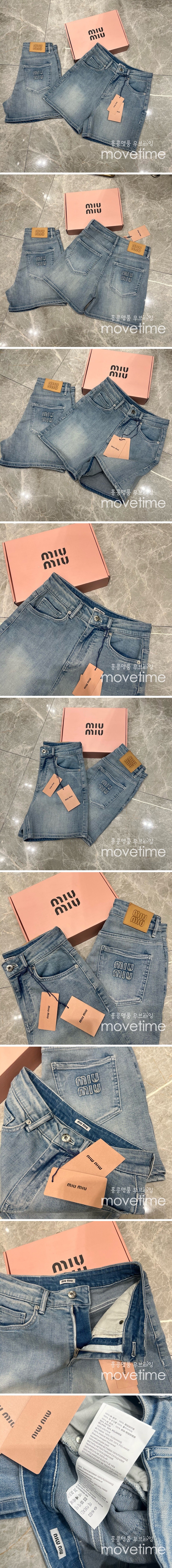 • [홍콩명품,MIU MIU] 미우미우 24SS 로고 여성 데님 미니 쇼츠 반바지, BM14311, TBG, 홍콩명품의류,구매대행,온라인명품