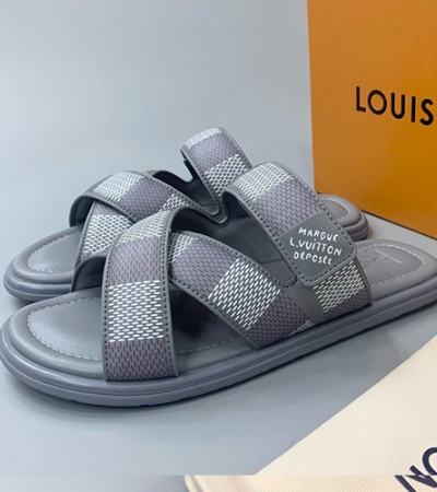 [홍콩명품.LOUIS VUITTON] 루이비통 24SS 로고 다미에 레더 가죽 샌들 슬리퍼 (그레이), SE3179, PMD, 명품스니커즈,운동화,구두,로퍼,하이탑,신발 > 신발