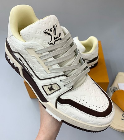 • [홍콩명품.LOUIS VUITTON] 루이비통 24SS 로고 모노그램 트레이너 스니커즈 운동화 (아이보리-브라운), SE3196, PMD, 명품스니커즈,운동화,구두,로퍼,하이탑,신발